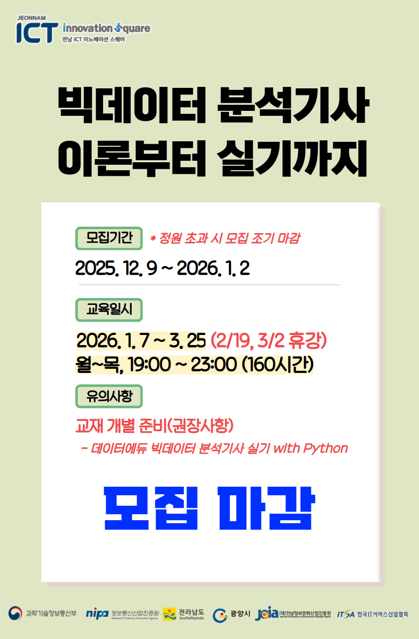 • 빅데이터 분석기사 자격증 취득을 원하는 자 • 빅데이터분석 입문자 • 빅데이터분석 및 처리 관련 분야 종사자 및 학생 • 파이썬프로그램 사용을 원하는 자