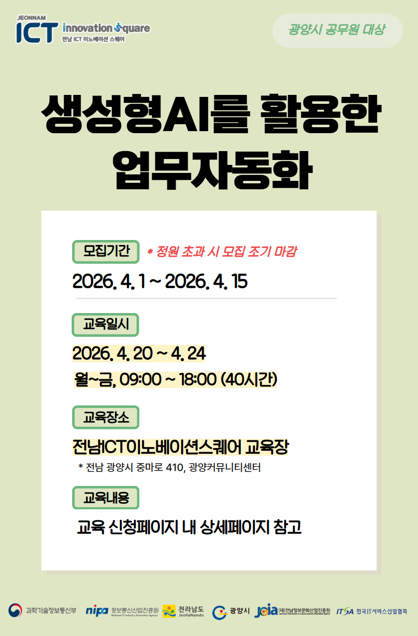 전남ICT이노베이션스퀘어 교육장(전남 광양시 중마로 410, 커뮤니티센터 1.5층)